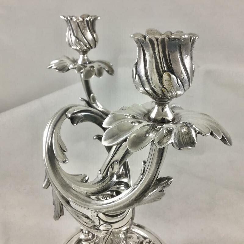 🇫🇷 Jolie paire de chandeliers "bouts de table" de style Louis XV, sortis des ateliers Christofle à la fin du dix-neuvième siècle.