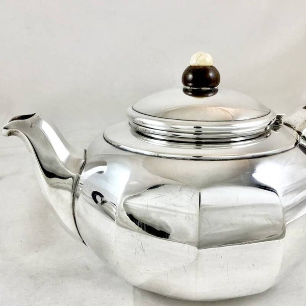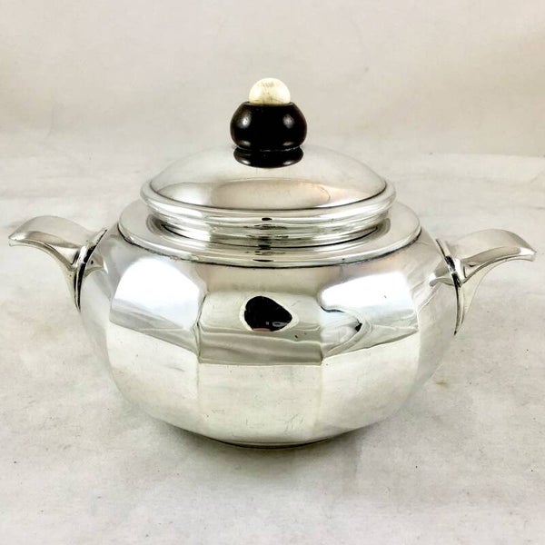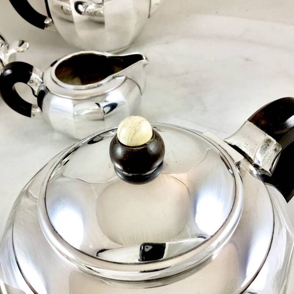 🇫🇷Très beau service à thé et à café Art Déco en argent massif, palissandre et ivoire du joaillier bruxellois Coosemans.