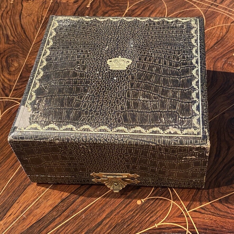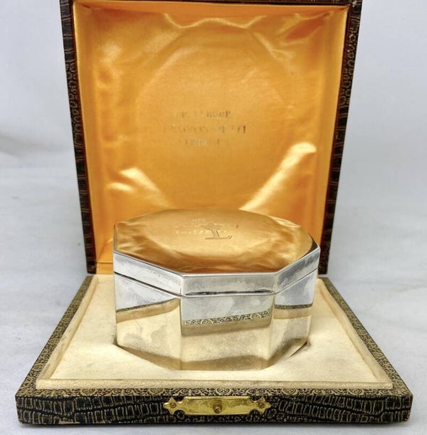 🇬🇧 Donated by King Leopold III of Belgium at the start of his reign, this art deco candy box is an extremely rare historical souvenir. It is still in its original case on which appears the royal crown. Weight 180 grams.