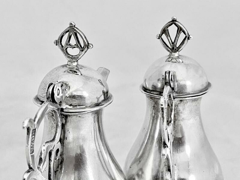 Pair Of Burettes, Spain 1680-1730, Sterling Silver, Silversmith Rosa, Pair Of Bulbs