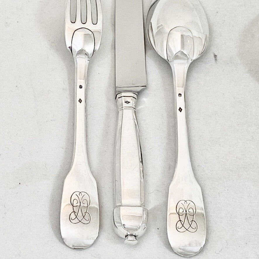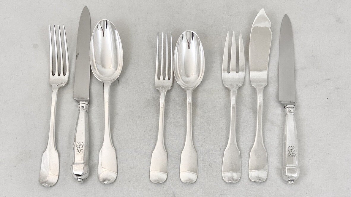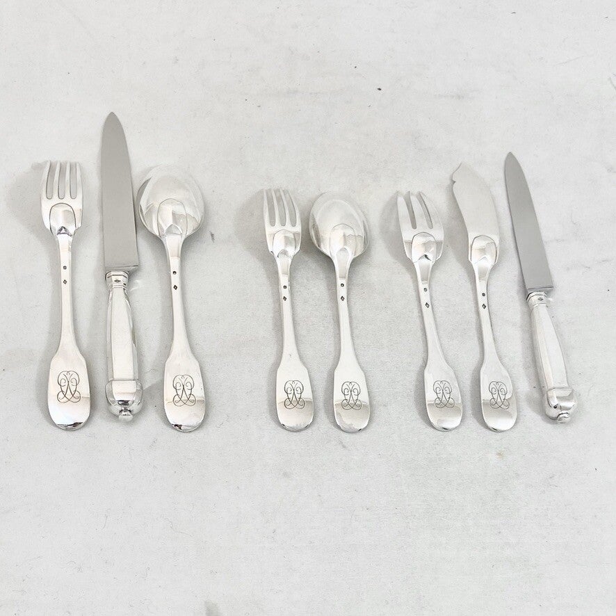Canteen of Cutlery in Sterling Silver, Louis XIII Style, Complete for 12 People