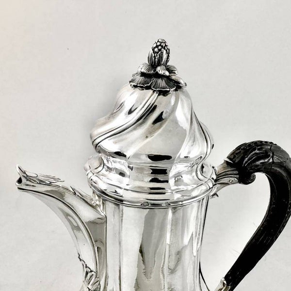 🇫🇷 Majestueuse cafetière d'époque et de style Louis Quinze en argent massif du premier titre.