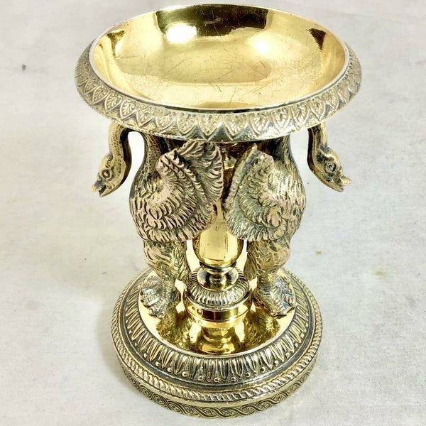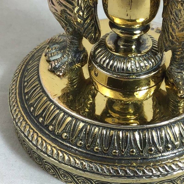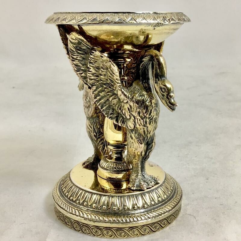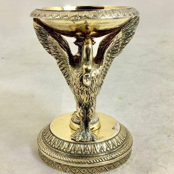 🇬🇧 Sumptuous Empire style salt stand in sterling silver and vermeil. Portuguese guarantee hallmark. Twentieth century period. It is made of cast silver and it is extremely heavy.