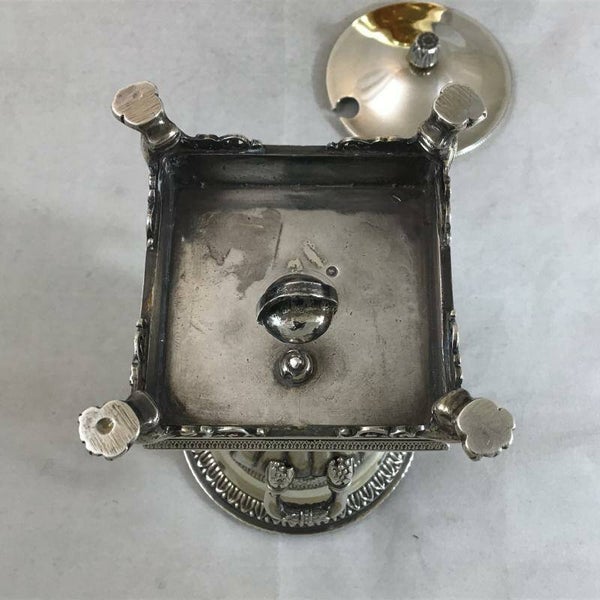 🇫🇷 Rarissime moutardier d'époque Empire en argent massif et vermeil au poinçon de maître du célèbre orfèvre de l'empereur Napoléon Bonaparte , Jean-Baptiste Claude Odiot. Poinçon au coq pour la période 1809-1819 et pour le premier titre d'argent. Il possède toujours son intérieur détachable en vermeil au même poinçon.