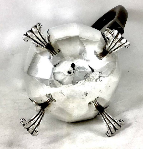 🇬🇧 Somptuous coffee pot, Douai, around 1730-40, by Jean Maximilien Savary. Its maker's mark is on the inside of the cover and on the bottom. On the bottom we can also guess two other hallmarks of Douai but they are more effaced. The jug has four legs, rather than three, as is often the case in Douai. It is large and rather heavy (1.2 kilos).