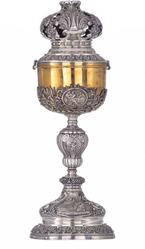 🇳🇱 Majestueuze Charles X-stijl ciborie in massief zilver met Belgische keurmerken voor de periode 1831-1868.