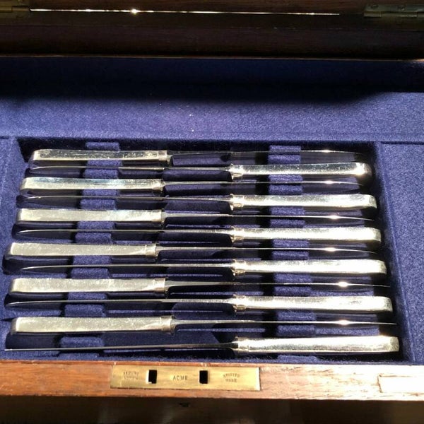 dans un coffre en bois de chêne, gainé tout récemment de feutrine bleue antioxydante