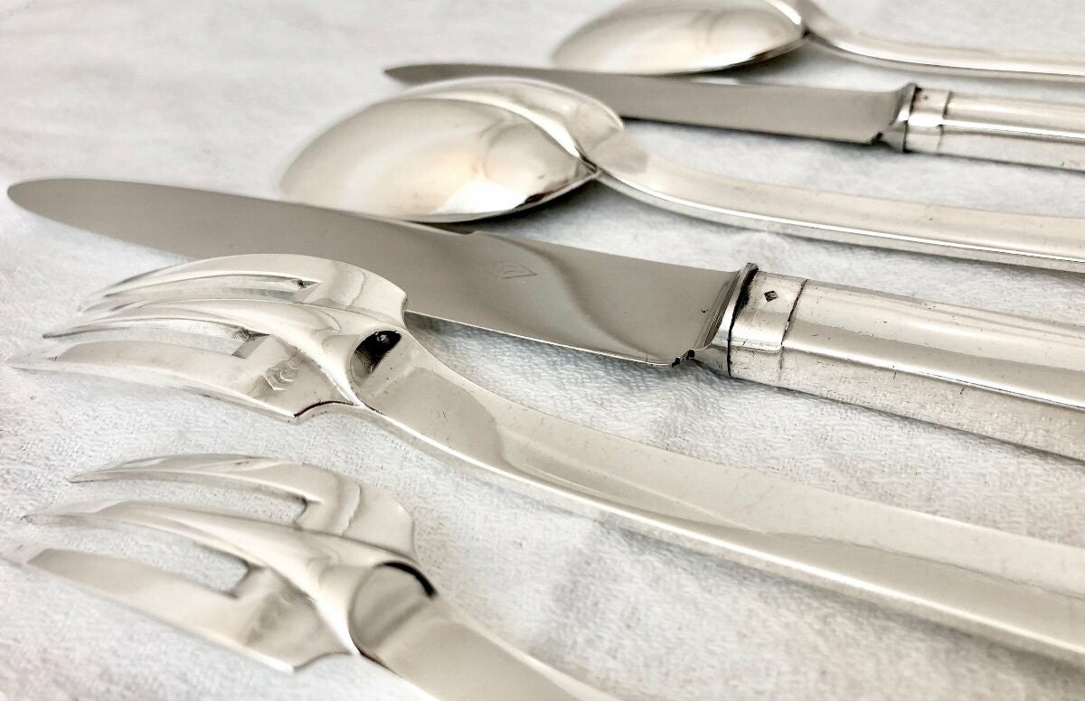 🇫🇷 Splendide ménagère Art Déco du célèbre orfèvre Parisien Jean E. Puiforcat en argent massif du premier titre.
