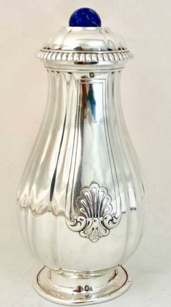 🇬🇧Lovely regency style sugar caster in sterling silver with a lapis lazuli stone. It comes from the workshops of the famous Parisian goldsmith Cardeilhac and probably dates from the interwar period.