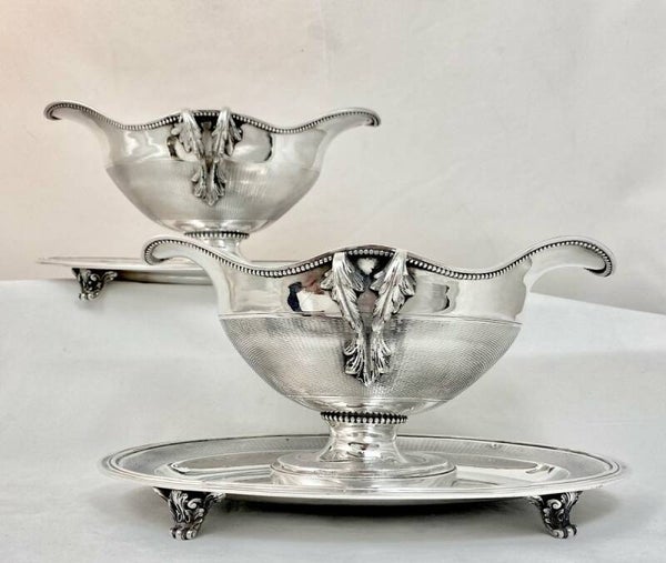 🇫🇷 Somptueuse paire de deux saucières en argent massif d'époque Napoléon III gravées au monogramme du roi Farouk I d'Égypte (1920-1965).