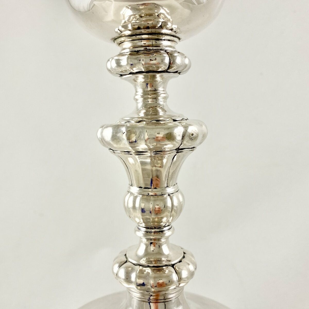 🇬🇧Sumptuous chalice from the Louis XV period in sterling silver. The top is delicately guilded on the inside and on the outside edge. It is tall and heavy, made entirely of sterling silver(958%). On the foot it bears the full hallmarks of the city of Namur and of the goldsmith Adrien Joseph Ancheval II for the year 1766-67. But we know that he did not become master until 1767.