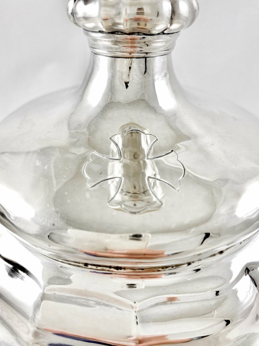 🇳🇱Weelderige kelk uit de Louis XV-periode in massief zilver. Het is groot en zwaar, volledig gemaakt van massief zilver (958%). Op de voet zijn er de volledige kenmerken van de stad Namen en van de goudsmid Adrien Joseph Ancheval II voor het jaar 1766-67. Maar we weten dat hij pas in 1767 een meester werd.
