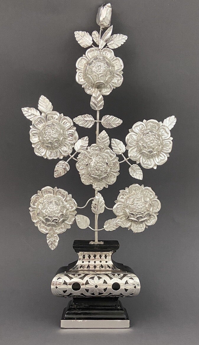 🇬🇧Pair of altar vases in solid silver and ebony from the 1700-1750 period. They come from the treasure of the Black Sisters of Saint John's Hospital in Bruges, now transformed into a museum. They were designed to be placed on an altar on either sides of The Altar Cross. Manufactured in a fairly thin thickness of silver, they suffered a little during the countless cleanings during their three centuries of existence. They show traces of several repairs and some imperfections and lacks. They have been completely revised and restored in our workshops. To protect them, we had them varnished. This will prevent you from having to clean them and possibly damaging them unintentionally. Given their great fragility, it is rather rare to find a pair in good condition on the art market.