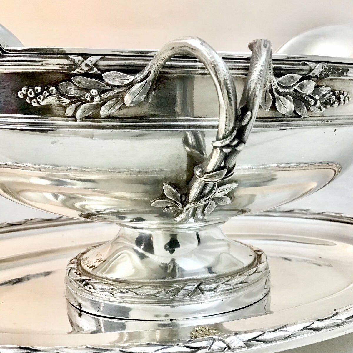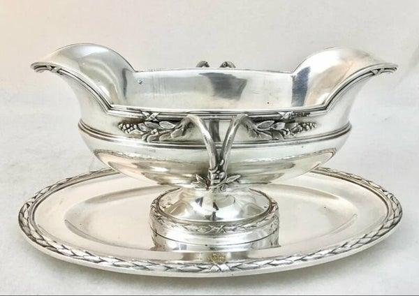 🇫🇷Cette somptueuse saucière de style Louis XVI est fabriquée dans le plus pur style néoclassique par la maison Odiot à la fin du dix-neuvième siècle et faisait probablement partie d'un grand ensemble de platerie d'argent en service dans l'hôtel particulier de cet grande actrice .